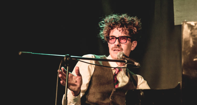 Un percorso attraverso la scrittura che passa anche per letture, monologhi, esecuzioni sbilenche e considerazioni semiserie di un personaggio che non dovrebbe esibirsi seduto.